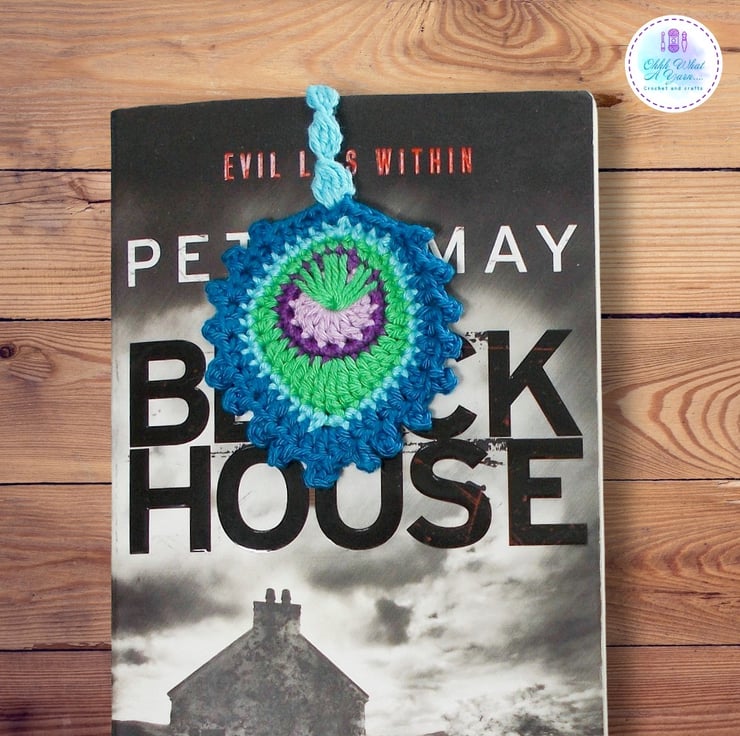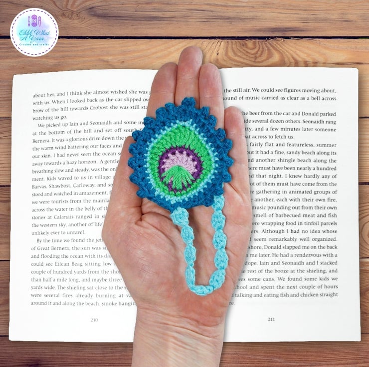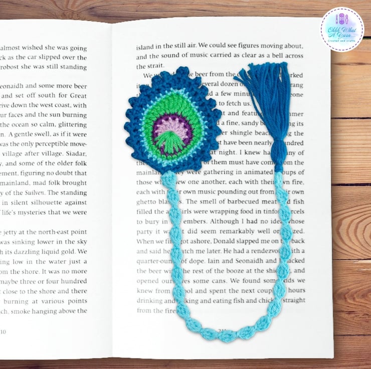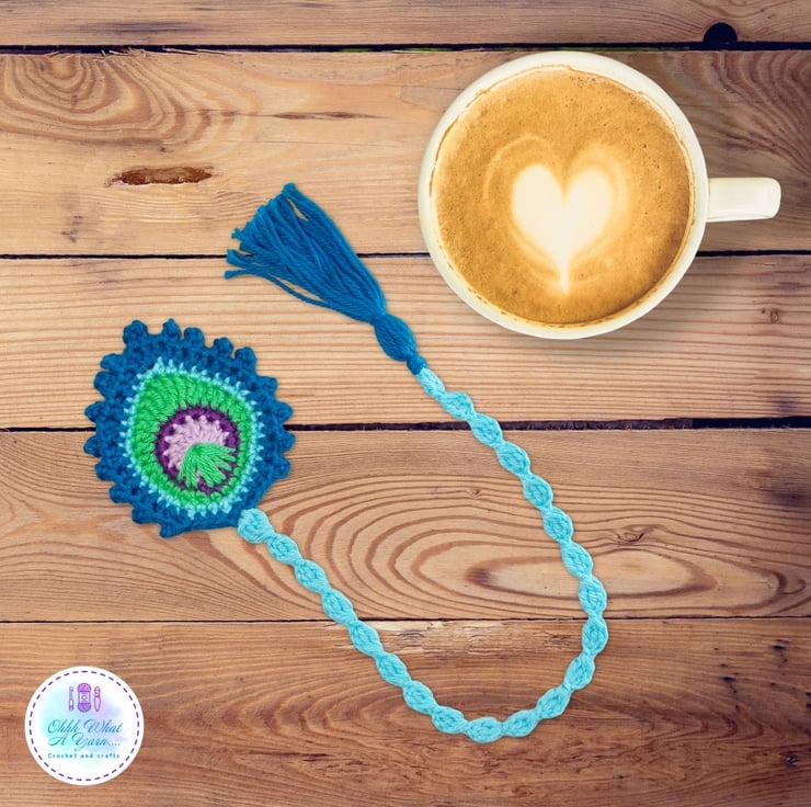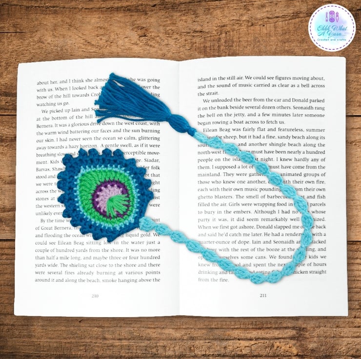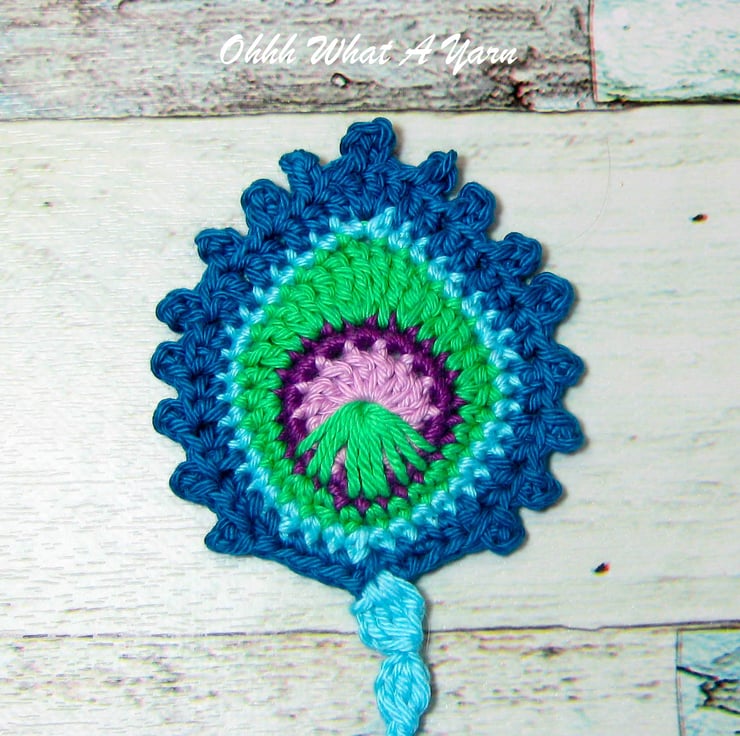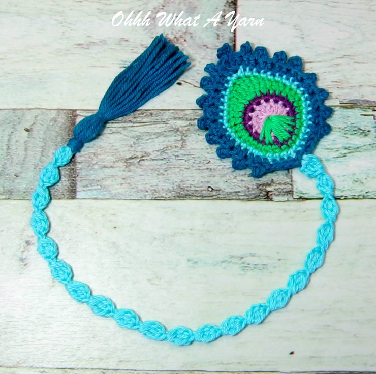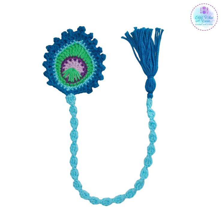This stunning peacock feather bookmark is crocheted using premium 100% mercerised purple cotton yarns giving it a lovely sheen and stitch definition, in shades of blue, green and purples.