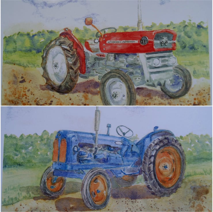 A pair of professionally produced art prints from my original watercolours of two classic tractors: