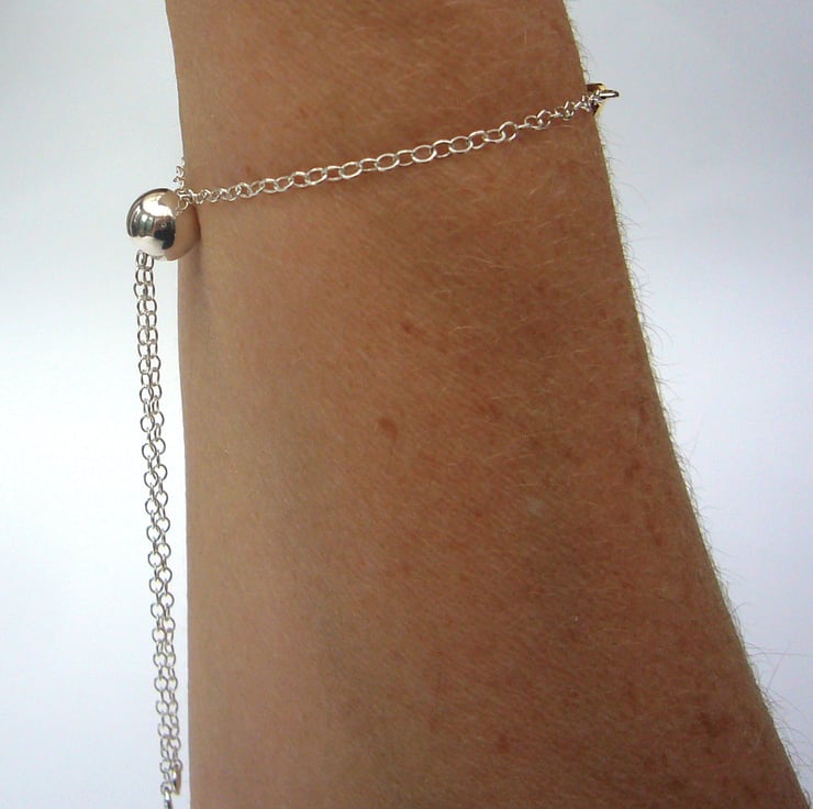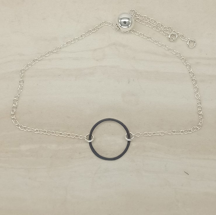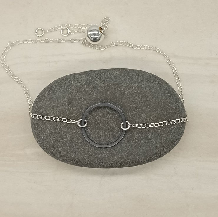 This simple bracelet would make a lovely gift. This oxidised sterling silver bracelet is part of a collection of minimalist bracelets. The chain is held together with a sliding clasp; this enables the wearer to adjust the length of the bracelet to suit.