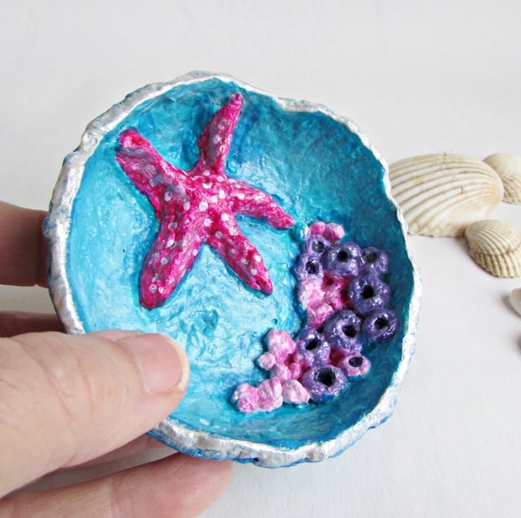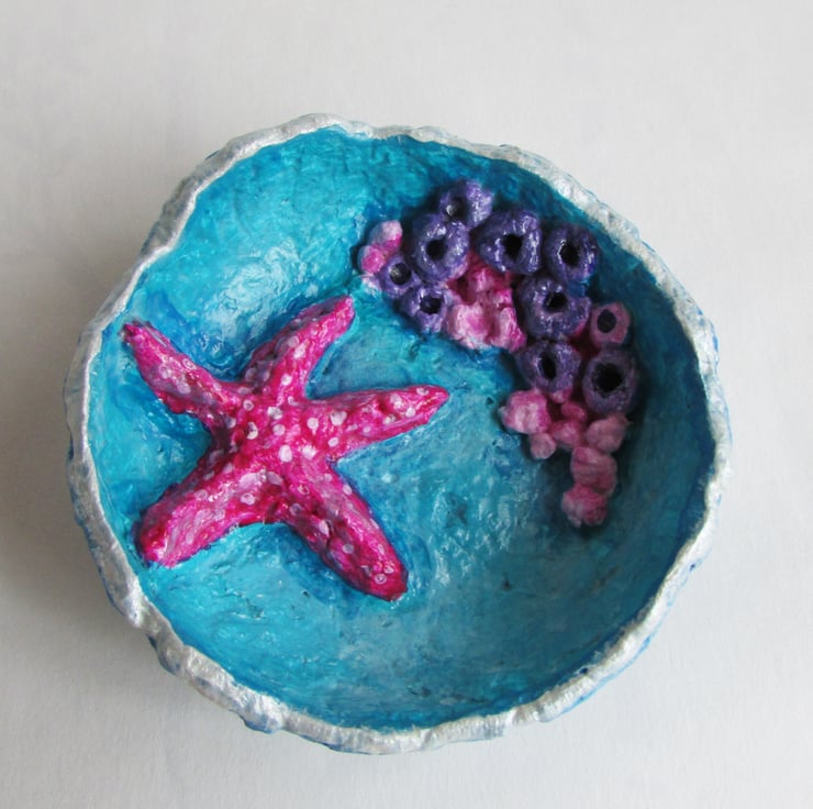 It's made to look like a little rock pool with 3D moulding and little pink Starfish added for further interest.
