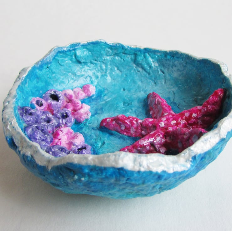 A pretty dish to sit on your dressing table or desk, made from papier mache.