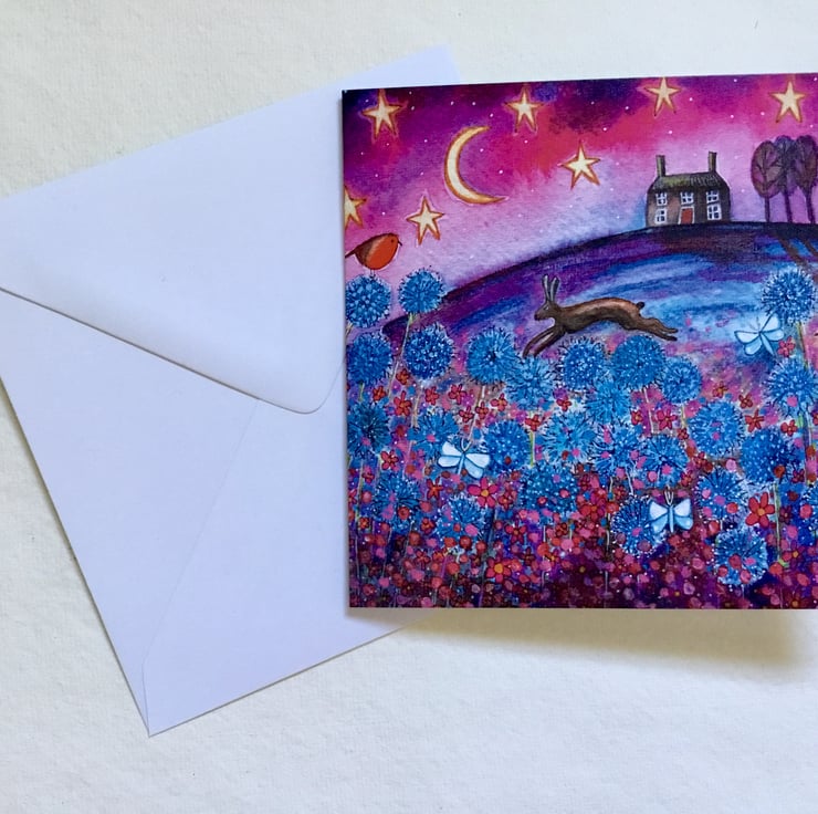 This card has been made from one of my original watercolour paintings. The card measures 12x12 cm and comes with an envelope.