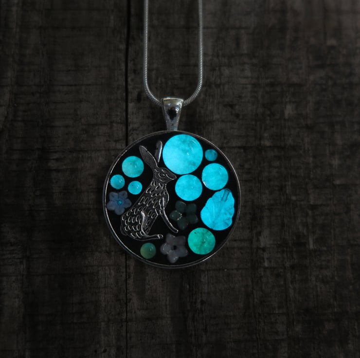 Inspired by nature unique glow in the dark stained glass mosaic pendant.