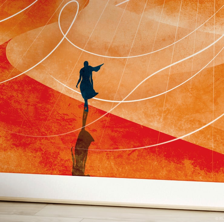 Sirocco Art Print: woman walking in desert across sand dunes