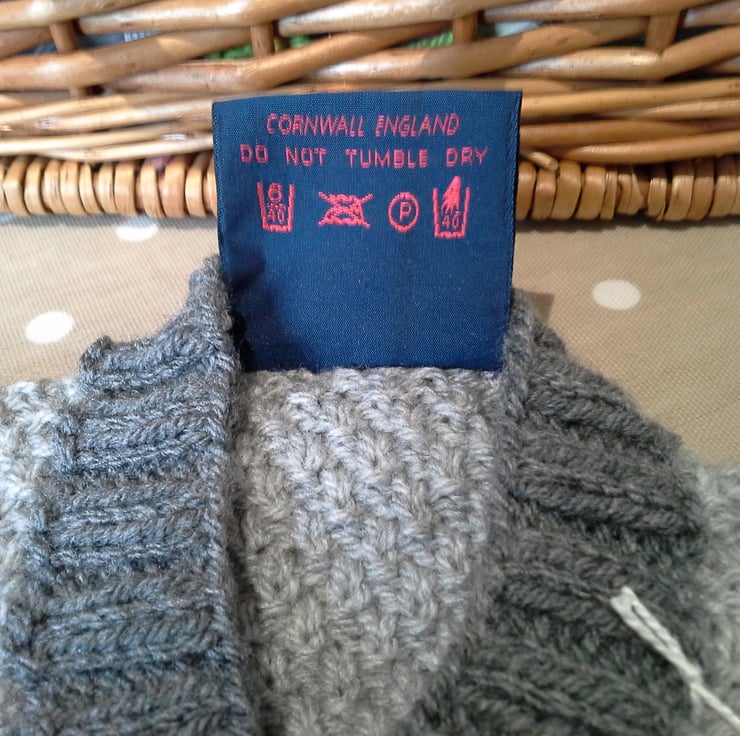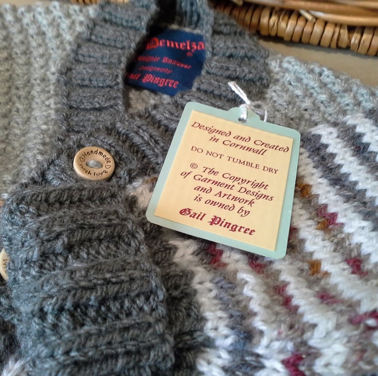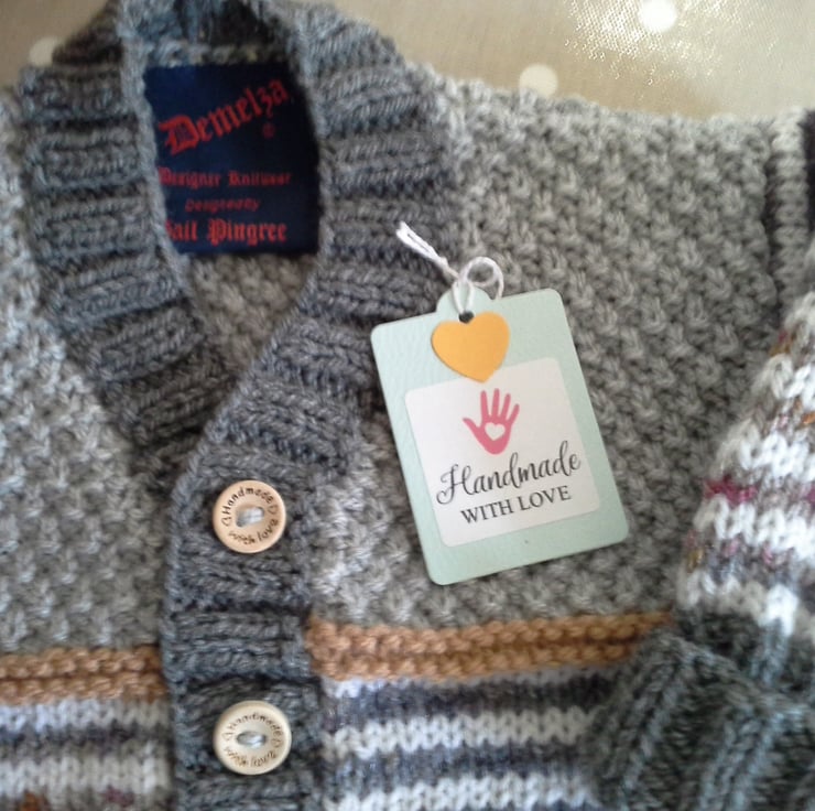 The item has the luxury branded garment label attached to the back neck edge with the care instruction woven within it and as proof of it's designer origins. All Demelza baby knitwear is graded to the highest set UK and EU sizing standards to ensure the average six month baby does gain a good year's wear from the product. This design is proving to be extremely popular by my regular clientele as either newborn gifts or for their own children. Feedback over the years has shown if care instructions followed garments have been worn by up to four babies in the same family and then still passed on to charities etc.