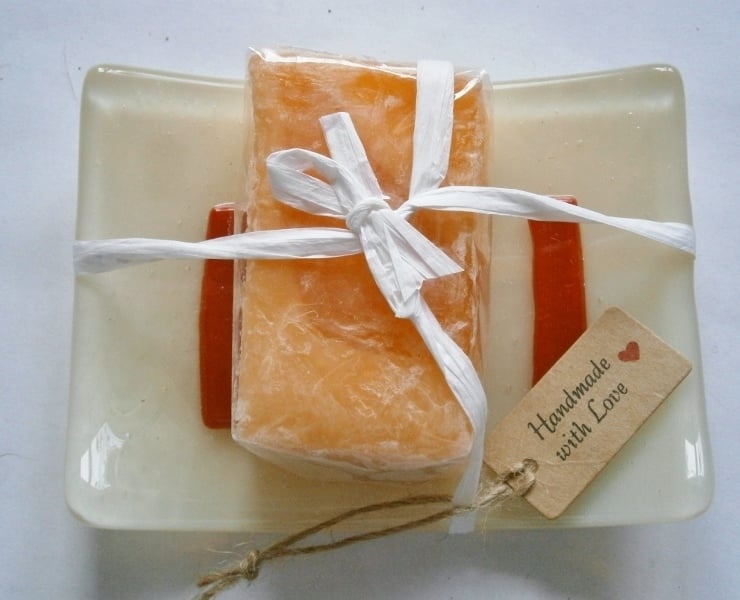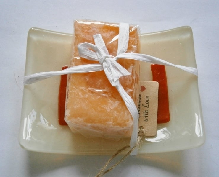 Each soap dish comes with a piece of hand made soap, which may differ from the one shown in the photo.
