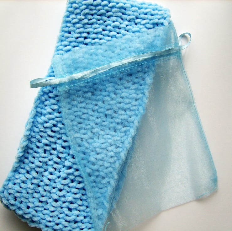 As it comes packaged in a blue organza bag it would make a nice gift idea, or if the scarf is a treat for yourself the bag will keep it stored neatly away while not in use.