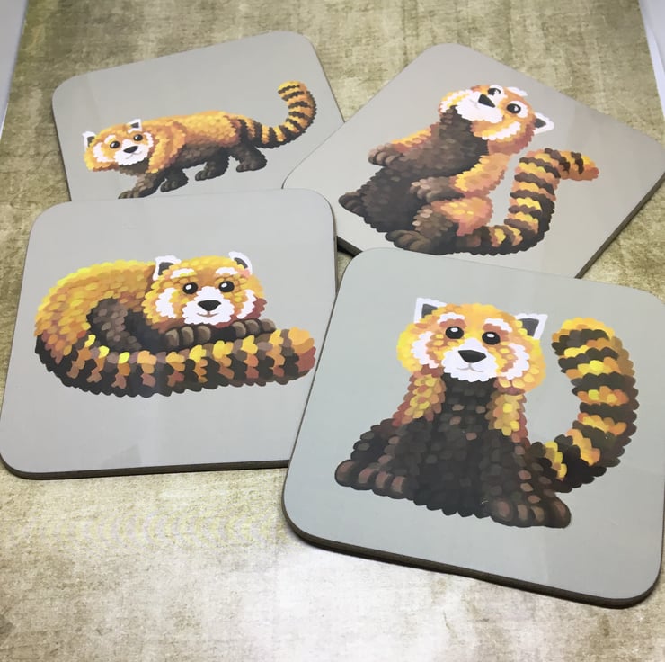 A set of 4 red Panda square coasters. Unisub Hardboard Coaster, 9cm square. Comes in a gift box.