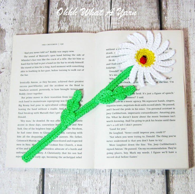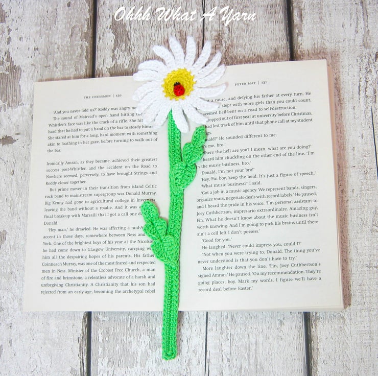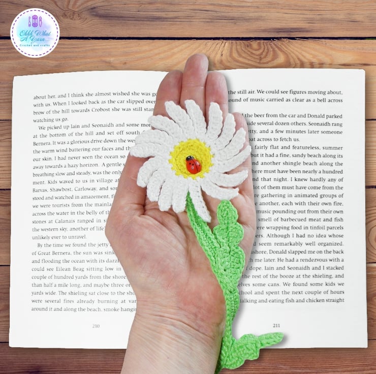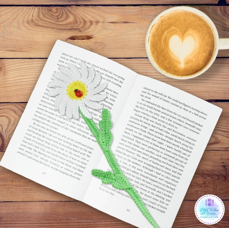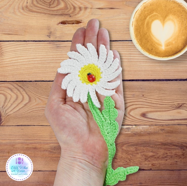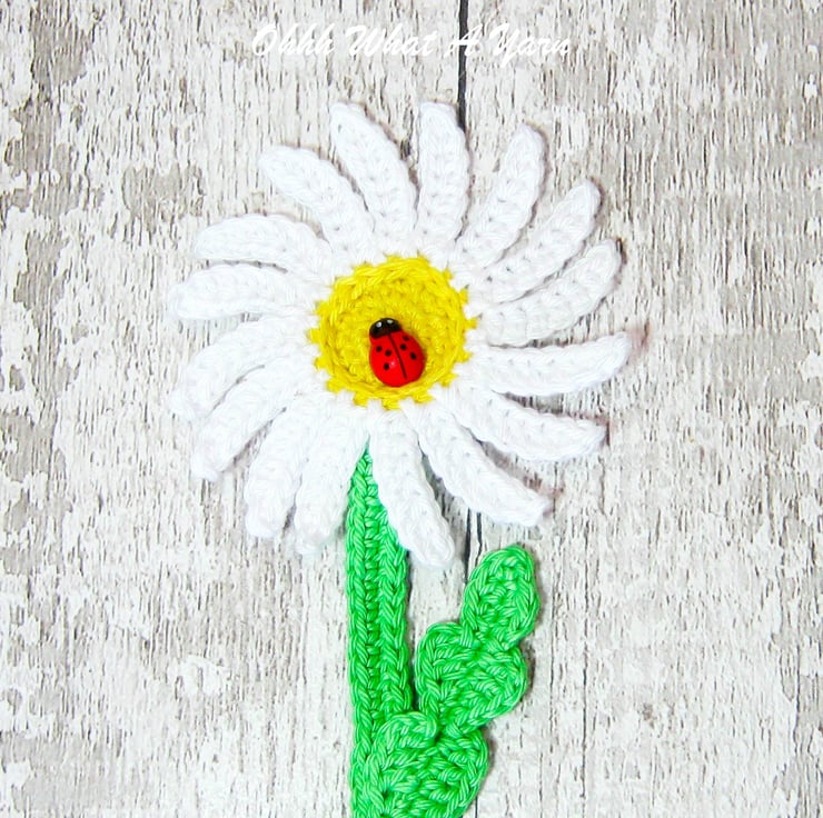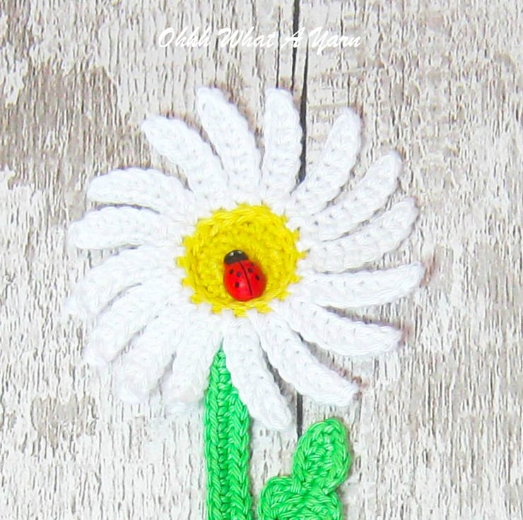 This gorgeous daisy and ladybird bookmark is one of the latest designs of my floral crochet bookmarks.
