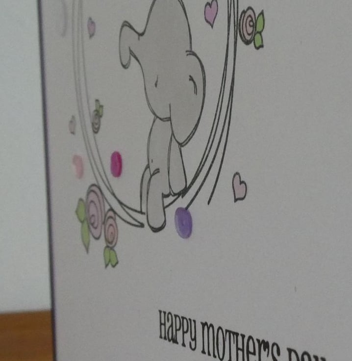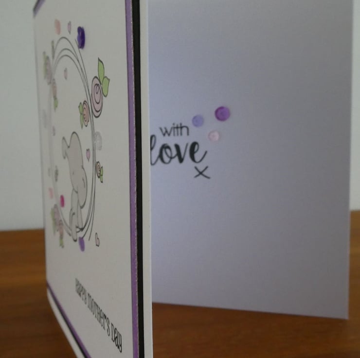 This cute Mother's Day card has been hand stamped and inked in delicate shades of pink and lilac.
