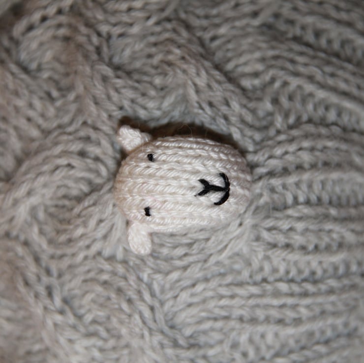 A gorgeous soft hand knitted light grey beanie with my unique sheepie head adornment. A really special hat, knitted in 100% baby alpaca yarn that would make a lovely gift for male & female alike!