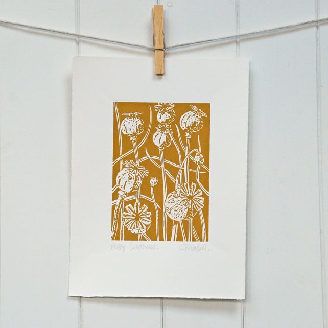 One of a series of seedhead prints. Hand cut and printed on hand press, available in dark cyan, charcoal grey or duck egg blue ink. Titled and signed in pencil by the artist.