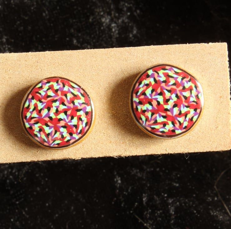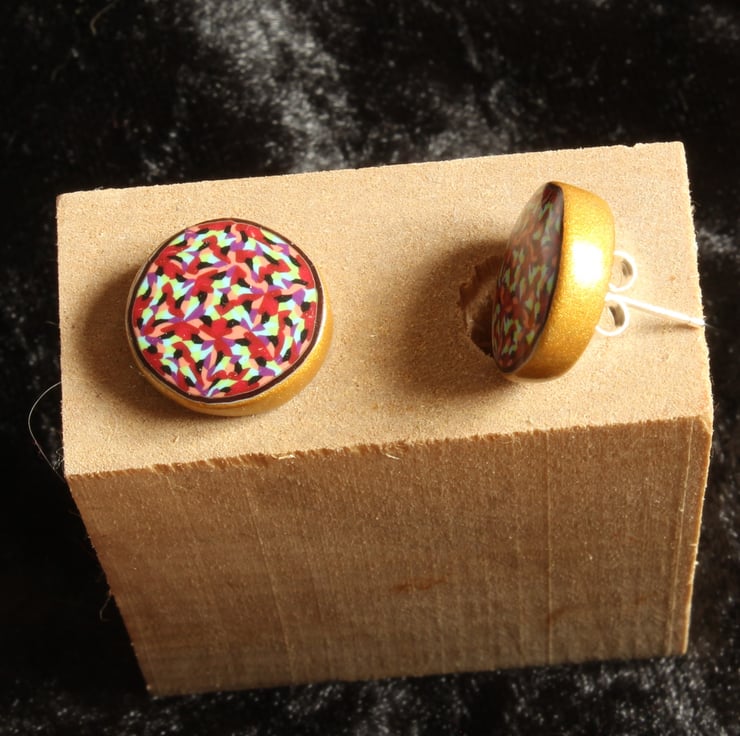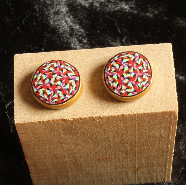 A fascinating and entrancing kaleidoscope pattern pair of ear studs. These are entirely thought up and made by myself, from polymer clay, and are very unique and original.