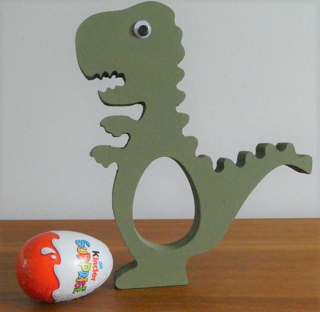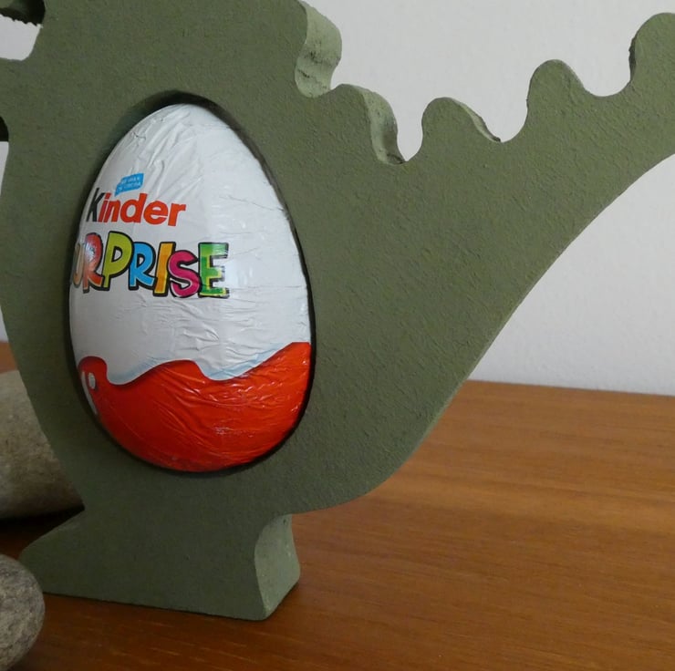This cute little dinosaur has the perfect sized space for the Easter Bunny to leave a kinder egg sized egg.