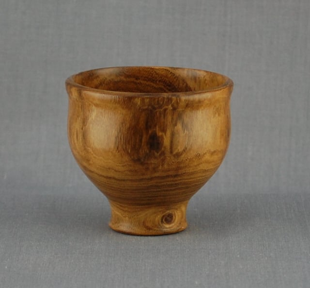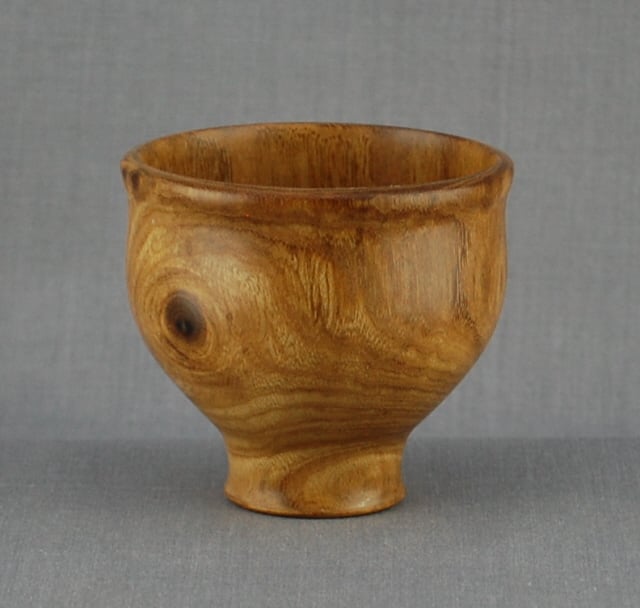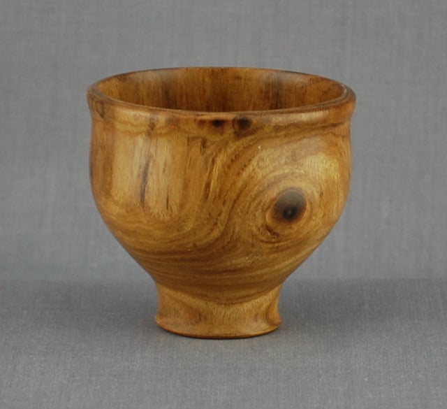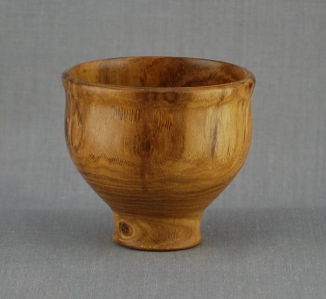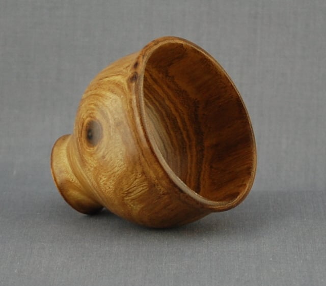 Delicate, small, and eminently tactile, this laburnum vessel has been turned and hand finished, enhancing the naturally occurring grain. Every aspect of this piece of treen is different and visually pleasing. Our delightful small vessel measures approximately 6.5 cm. in diameter and 5.5 cm. high.