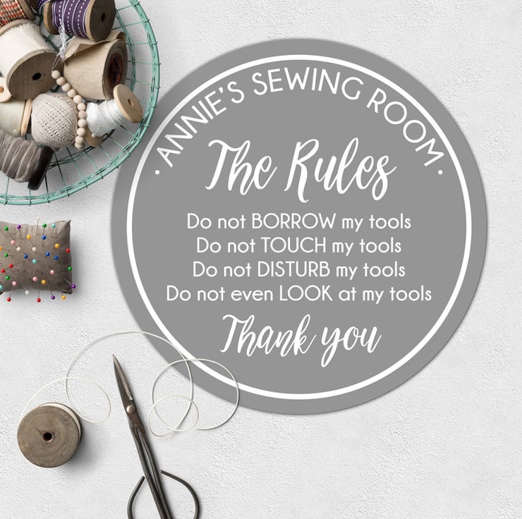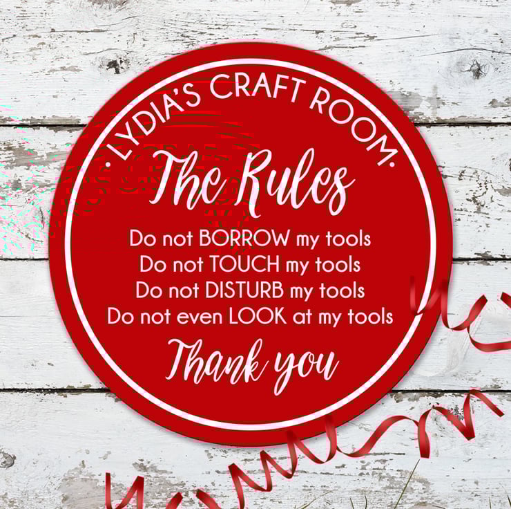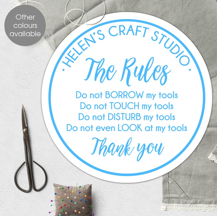 This personalised round wall sign is the perfect gift for a craft room, home office or studio. Created and personalised to order, it’s available in a range of colour options (see images for details). A great gift for anyone who gets touchy when someone ‘borrows’ something from their desk or workbench. Whether they just enjoy a crafting hobby, or they’re a serious cottage industry or business owner, any artisan or designer will appreciate the message behind this fun wall sign!