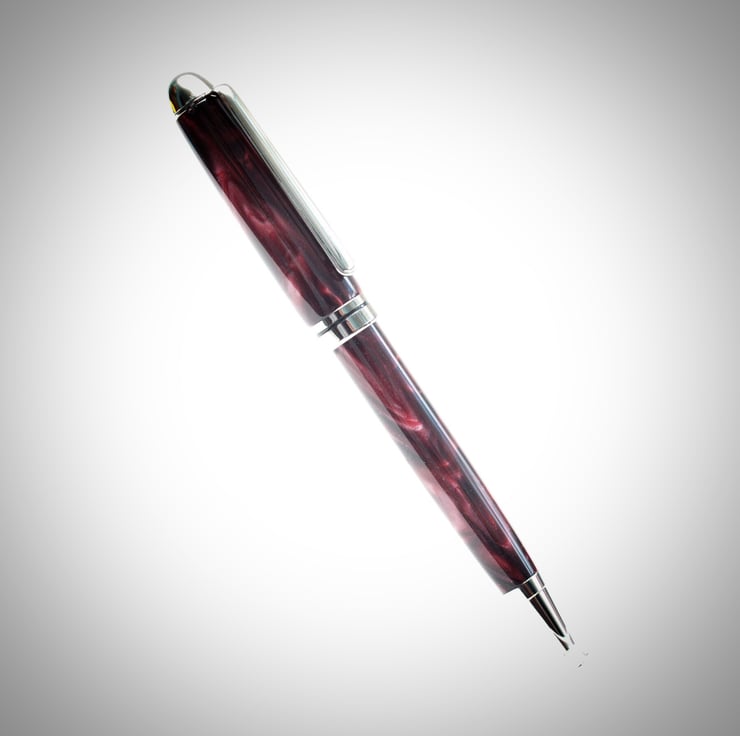 A really eye-catching ballpoint pen with barrels made from acrylic. This highly iridescent material and black titanium plated fitting are normally only found on pens costing much. These are hand crafted by myself and finished to an exceptionally high quality.