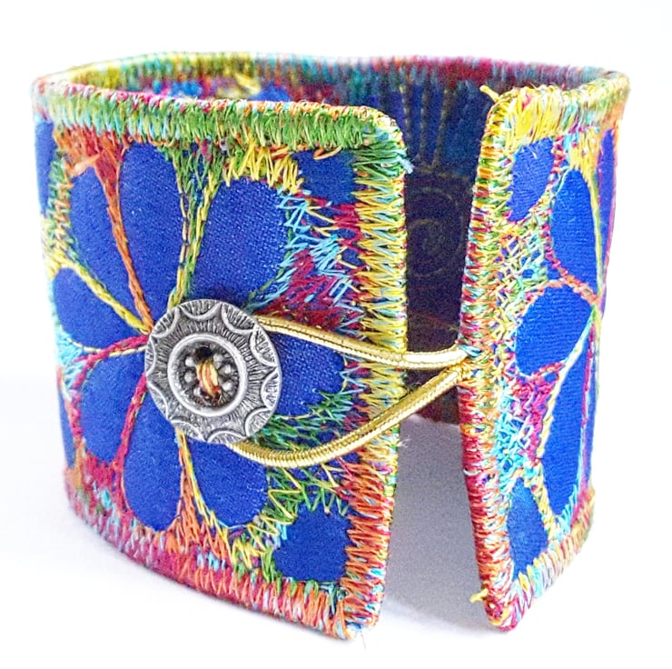 It has a beautiful metal button and an elasticated closure so it will stretch to fit a slightly larger wrist.