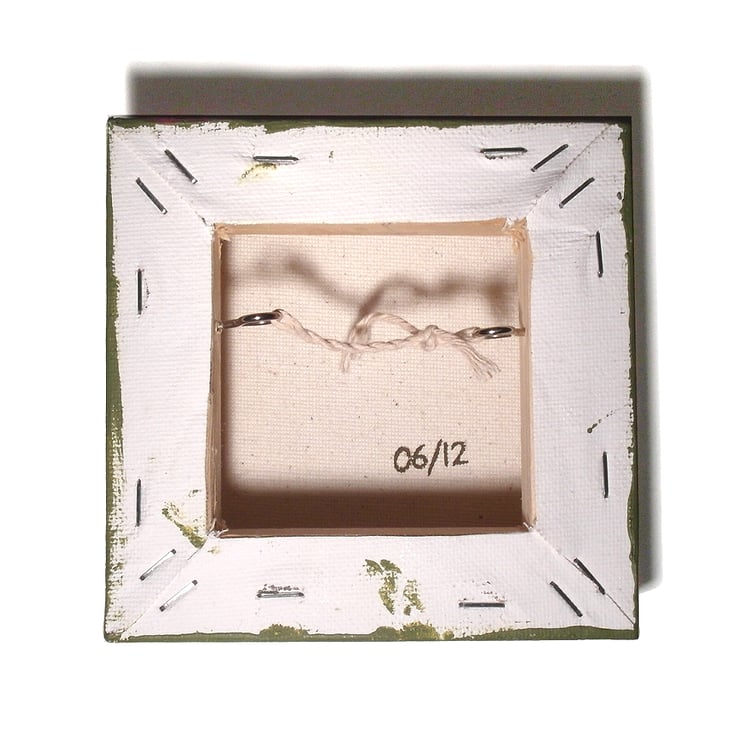 This original monkey nursery decor is painted in acrylics on a small 12.5cm x 12.5cm and 3.5cm deep canvas (5" x 5" and 1.5" deep). The background colour carries on over the sides so there is no need for framing, and a string is attached to the back so it is ready to hang.