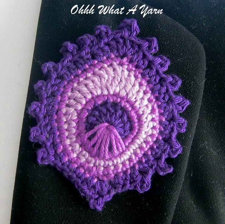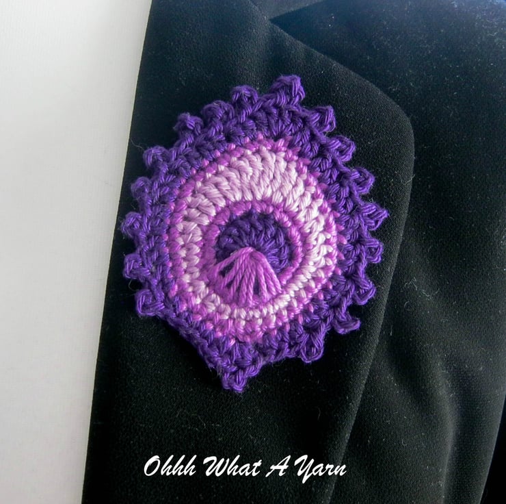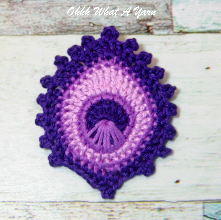 This stylish peacock feather brooch has been crocheted using Scheepjes Catona mercerised cotton yarns which give it a lovely sheen and stitch definition.