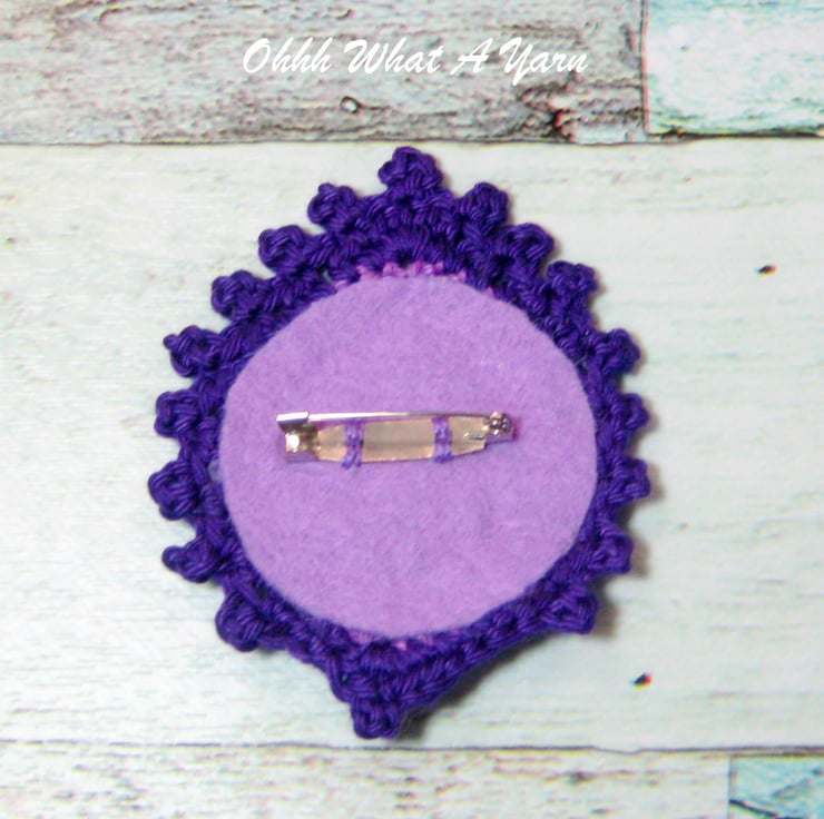 Each one has a felt backing and a standard brooch back. They measure approximately 8 cm by 6.5 cm, and they can be hand washed in cool water, dry flat.