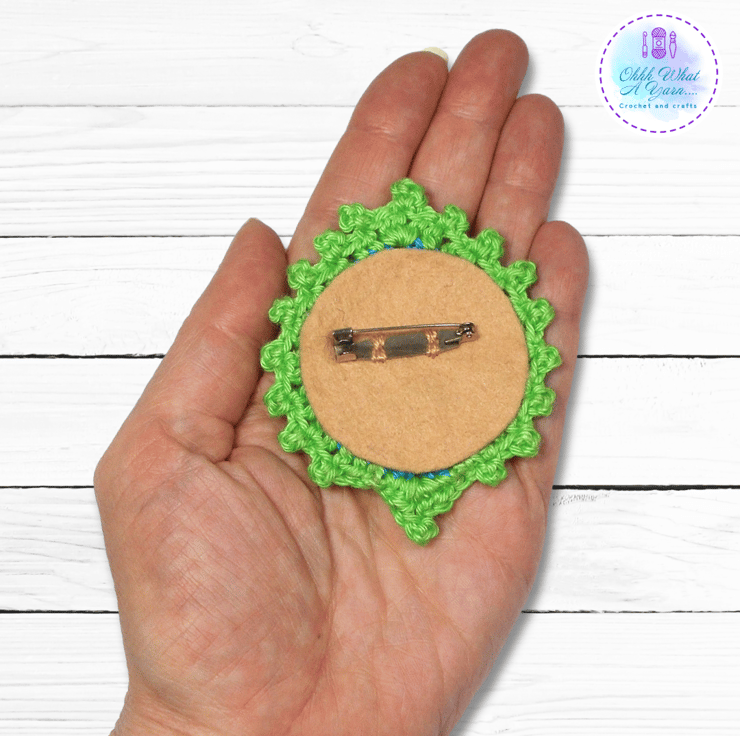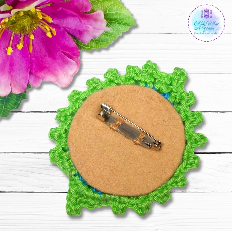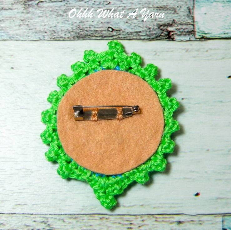 Each one has a felt backing and a standard brooch back. They measure approximately 8 cm by 6.5 cm, and they can be hand washed in cool water, dry flat.