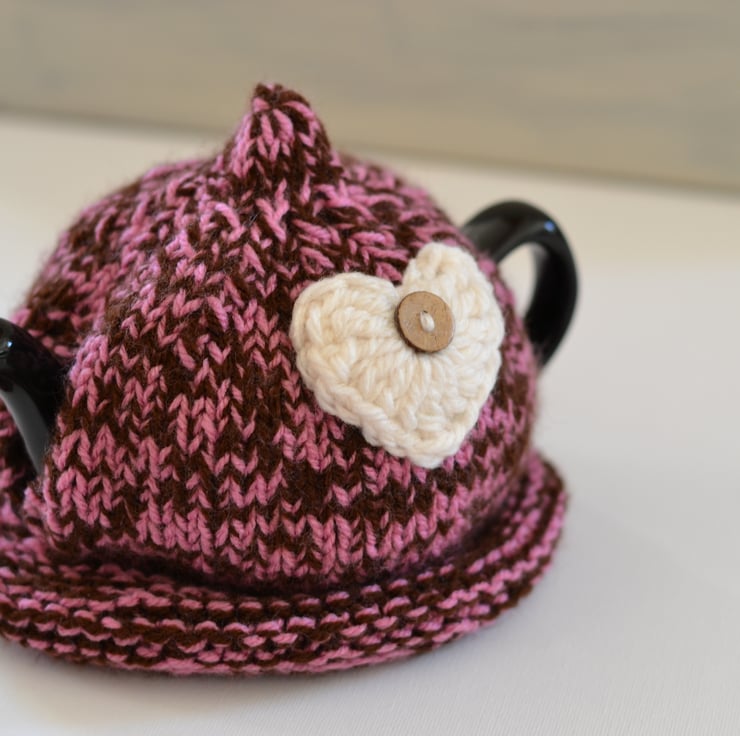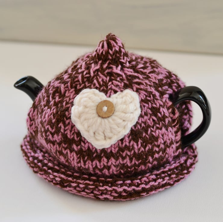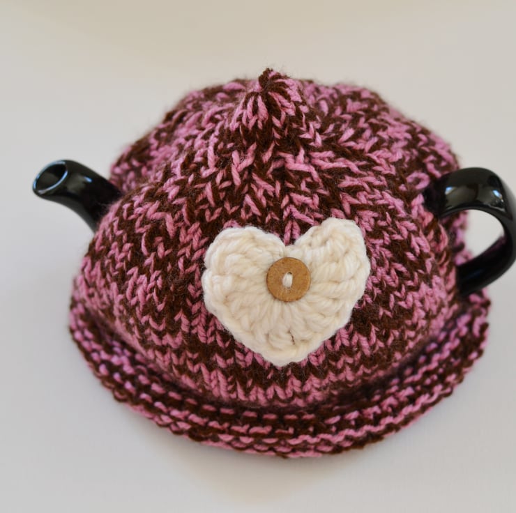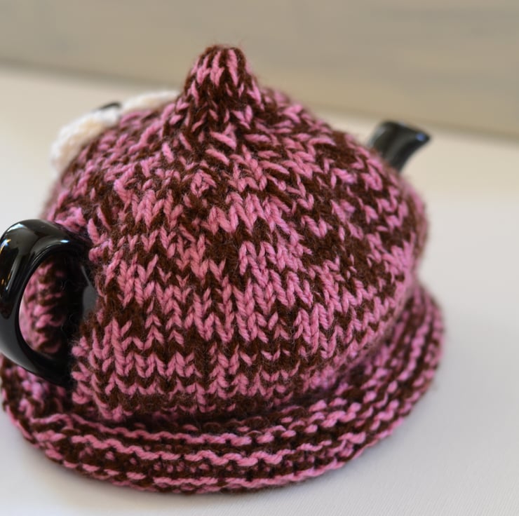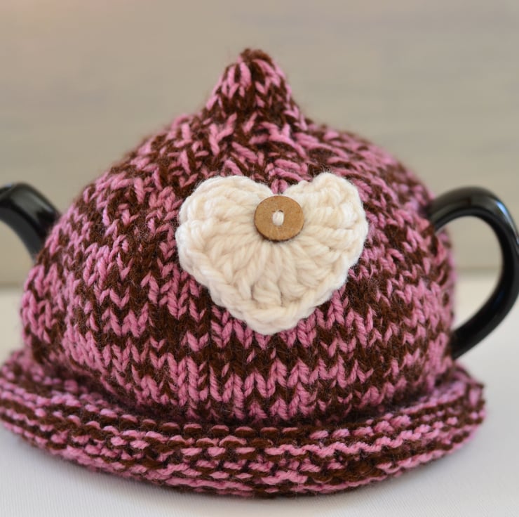Hand knitted using 2 strands together to produce this lovely colour, 1 strand candy pink and 1 strand brown. Lovely and thick and is made in 100% acrylic yarn one of my own created patterns.