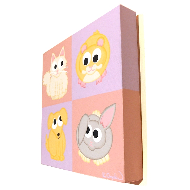 Nursery Decor - cute pets original acrylic art - cat, dog, hamster and rabbit