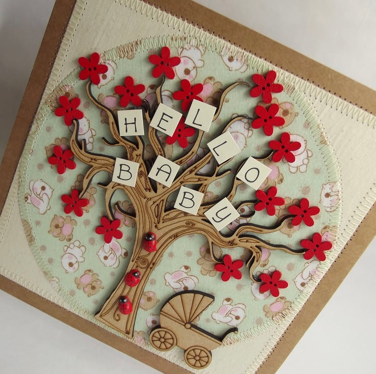 Hello Baby Fabric Greetings Card