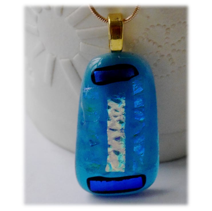 Dichroic Glass Pendant 129 Turquoise Glitter Strip with gold plated chain