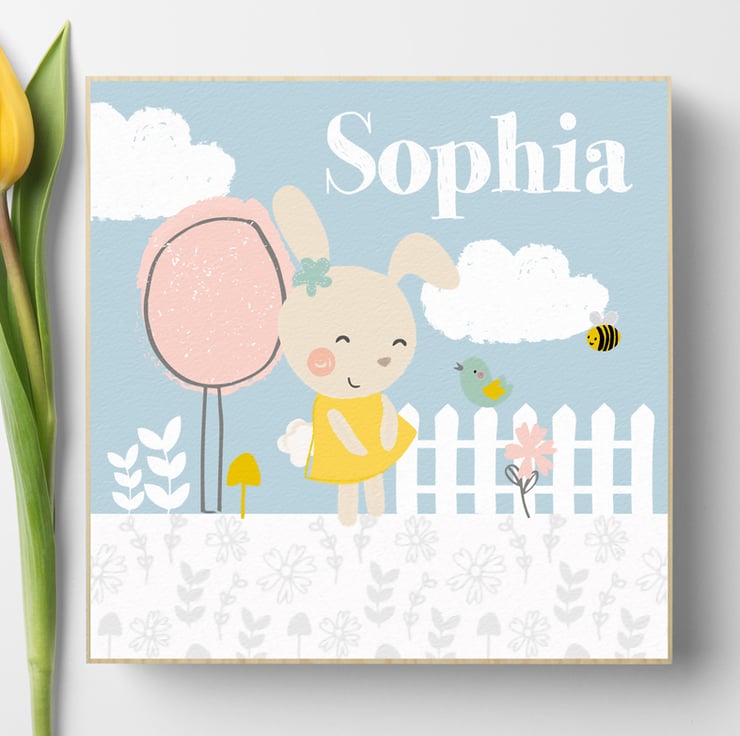 This Summer Garden personalised wooden picture block looks gorgeous in a baby’s nursery – stand it on a shelf or windowsill for a lovely decorative touch for your little one’s bedroom. Created to order, this solid wood block is personalised with your chosen first name. With a sweet Scandi design and featuring soft pastel colours, this pretty freestanding wooden block is a charming addition to the nursery.