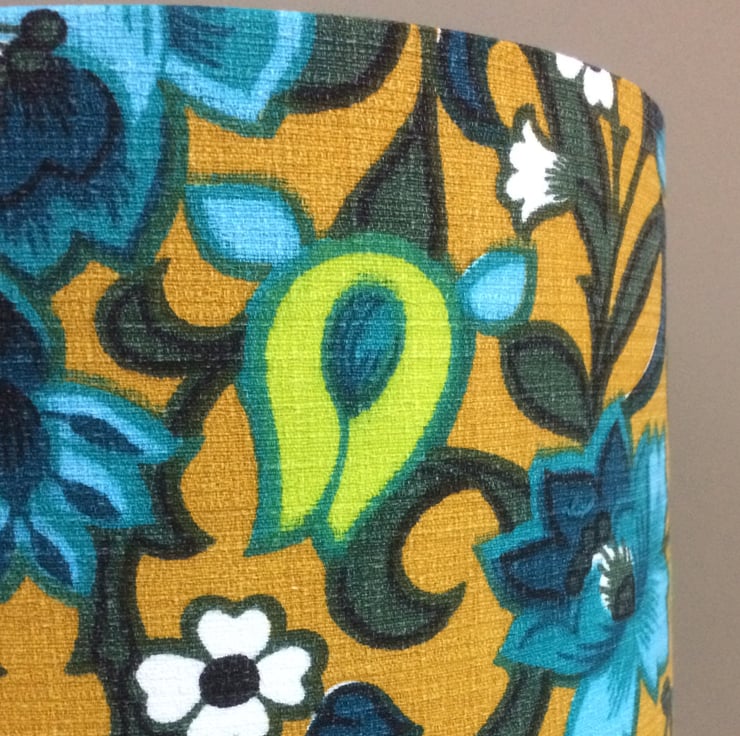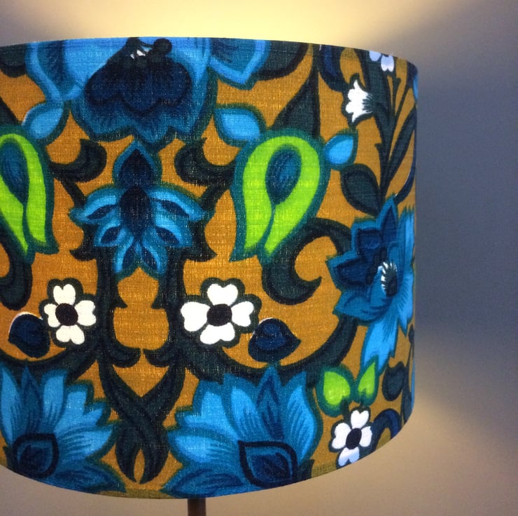 Scandi style 60s 70s Blue Lime Mustard Vintage BARKCLOTH Fabric Lampshade option - an unusual and bold fabric .