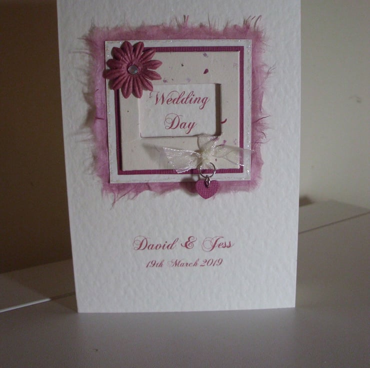 Personalised A6 wedding congratulations card.