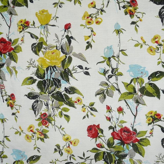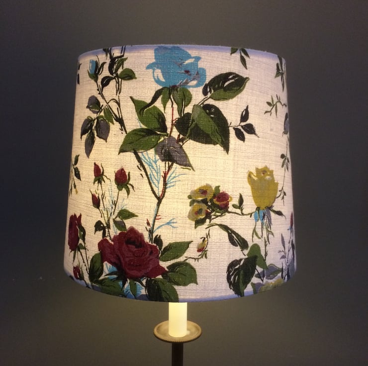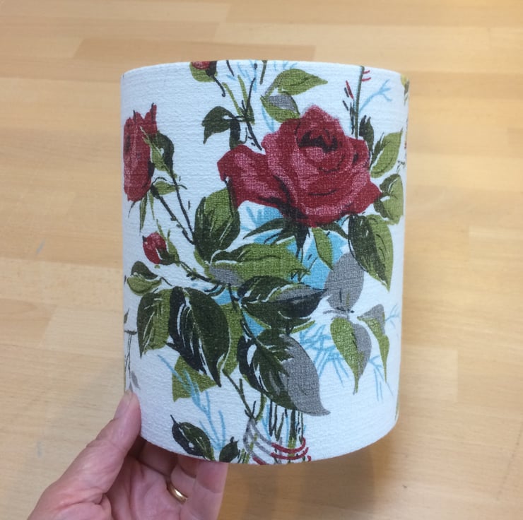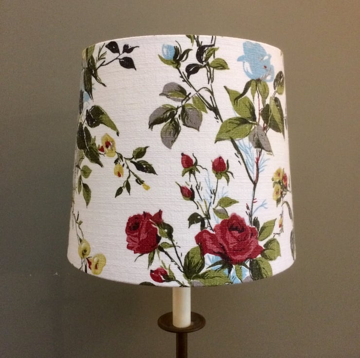 Pretty 50s Summer Rose Fothergay VIntage Barkcloth Fabric Lampshade option - typical barkcloth fabric of the period but also a great feature in a modern or traditional home.A lovely delicate design