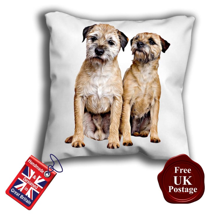 Border Terrier Cushion Cover, Border Terrier Cushion, Choose Your Size & Reverse Colour, Handmade with a zip for cover removal. Our Cushion Covers are designed and Printed by us Aggie’s Bags, our covers are overlocked to give it strength and structure.