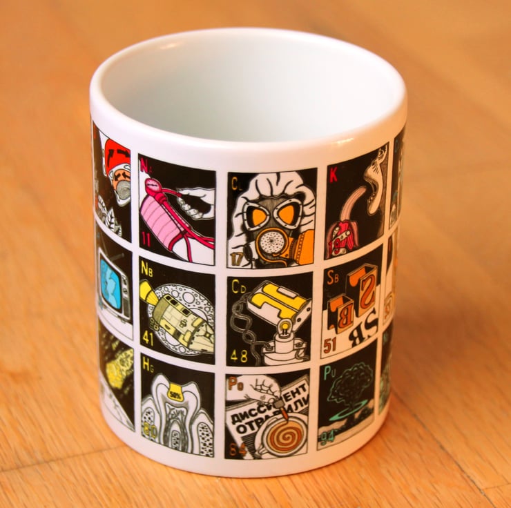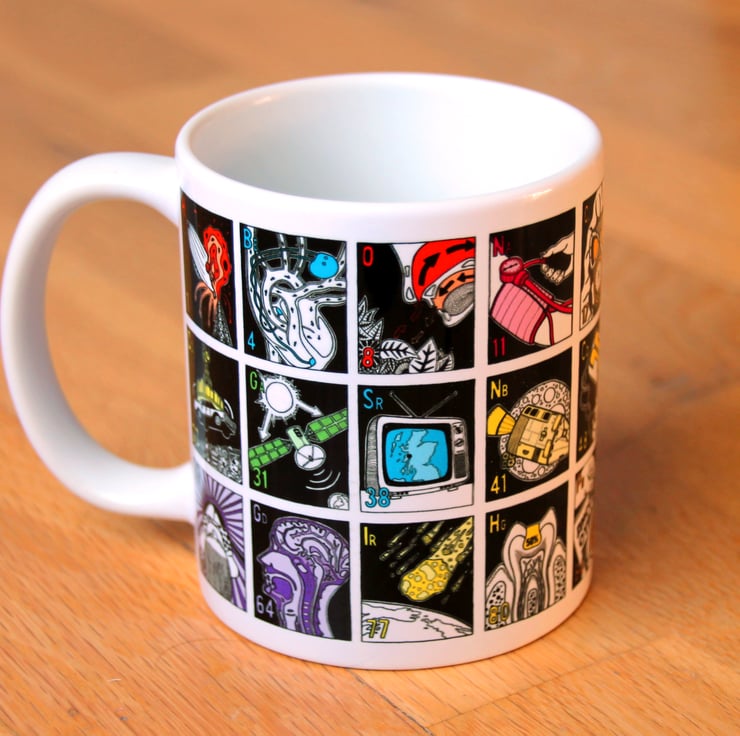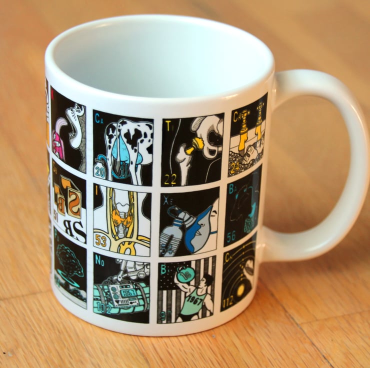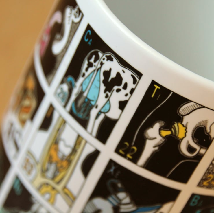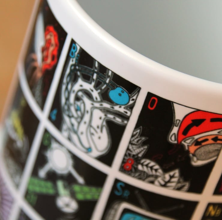 A self initiated project of the illustrator and designer James Nicholls, the mug is designed to show the scientific and everyday uses of a selection of the elements in the periodic table as an educational and entertaining piece of drink ware, in a more engaging way than a standard periodic table.