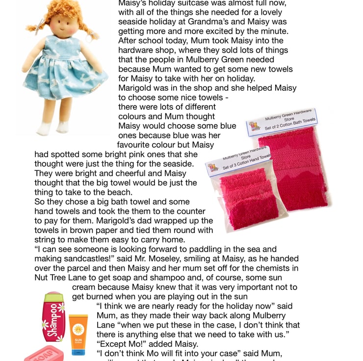 There are other children in Maisy’s class at school - Violet, Billy with his pet rabbit, Amber, Tilly, Rosie and her kittens, Amelia, Ruby, Marigold, Bobby with Max the dog, and the twins Oliver and Olivia, who have a puppy called Oscar. The dolls are all 26cm tall and baby Daisy is 16cm. Maisy and Mo love nothing more than having adventures with their friends. You can read about their adventures on my Facebook and Instagram pages - Maisy Muffin Rag Dolls and on my Mulberry Green Pinterest boards.