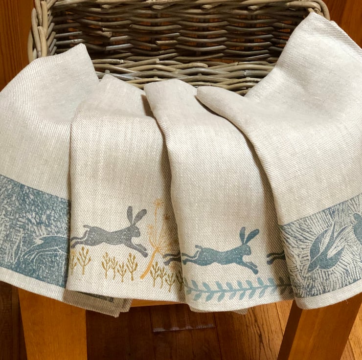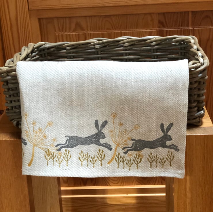 This country kitchen style tea towel has been made from a quality linen fabric which I have block stamped with a typical countryside theme.
