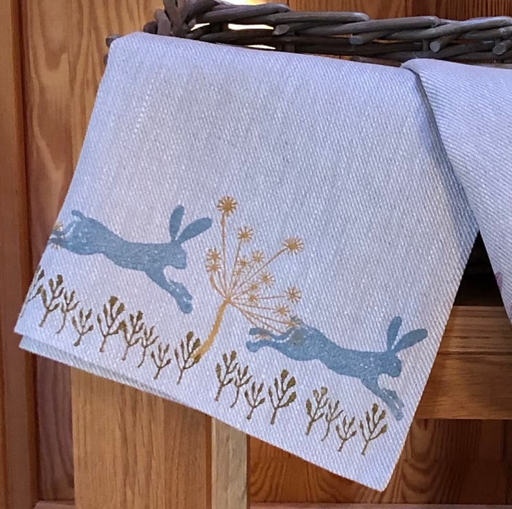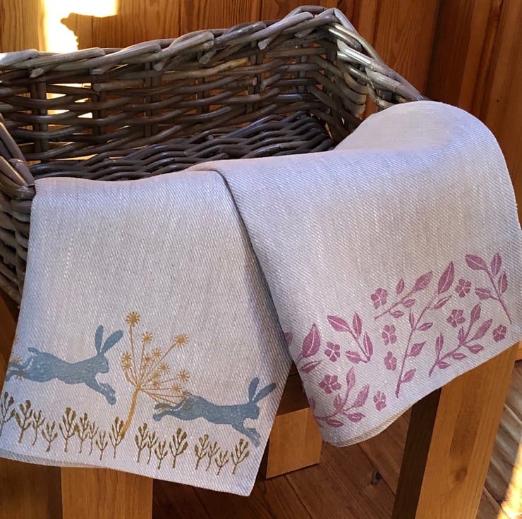 This country kitchen style tea towel has been made from a quality linen fabric which I have block stamped with a typical countryside theme.