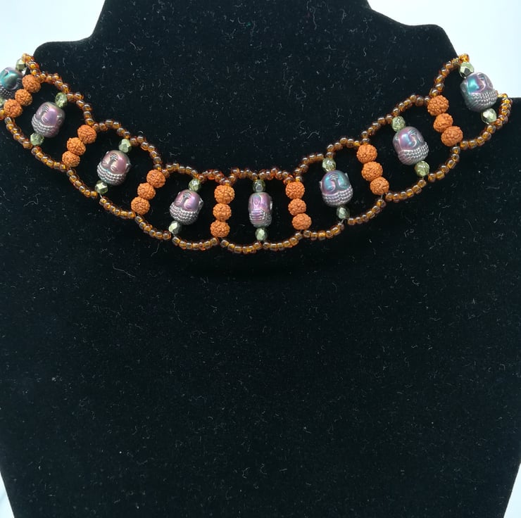 I've handcrafted for you a lovely beaded rudraksha beads, hematite (electroplated) yellow quarts and seed bead choker.