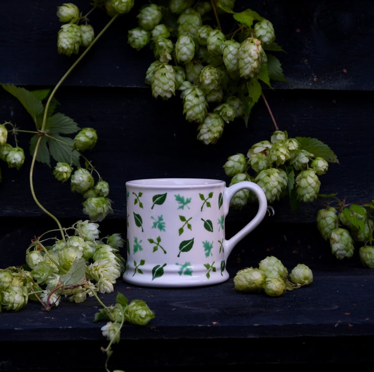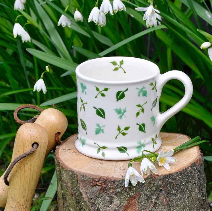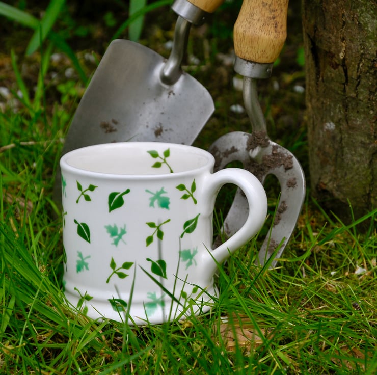 Garden Herbs Country Mug hand painted with little sprigs and leaves, a lovely gift for gardeners and cooks.