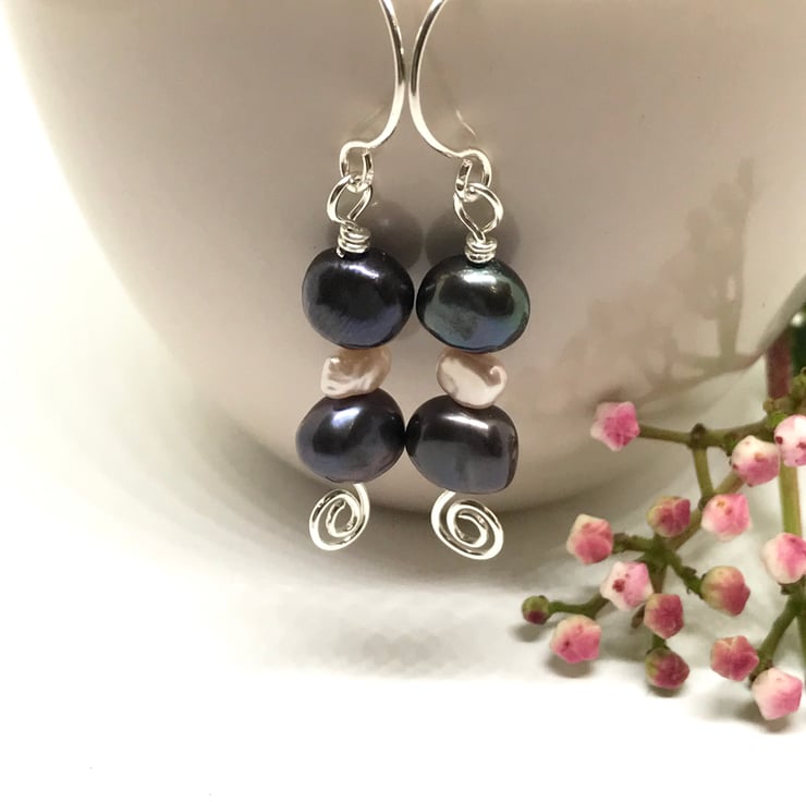 A pretty pair of fpearl earrings hand made in sterling silver.