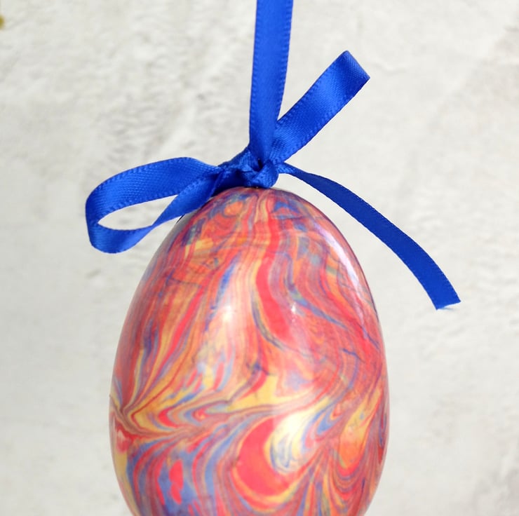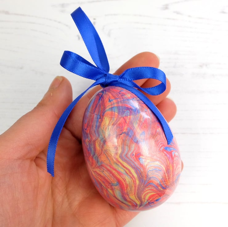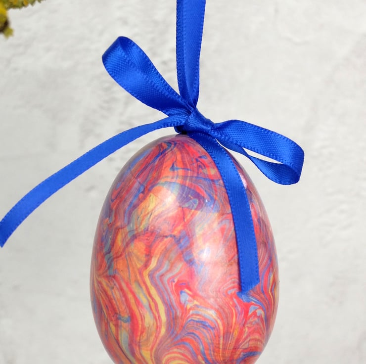 This beautiful double marbled ceramic Easter egg is one of my limited edition of marbled ceramic Easter range. Marbled in a bold palette of blue, red and gold, this decoration will make a delightful addition to your Easter tree or table centerpiece.