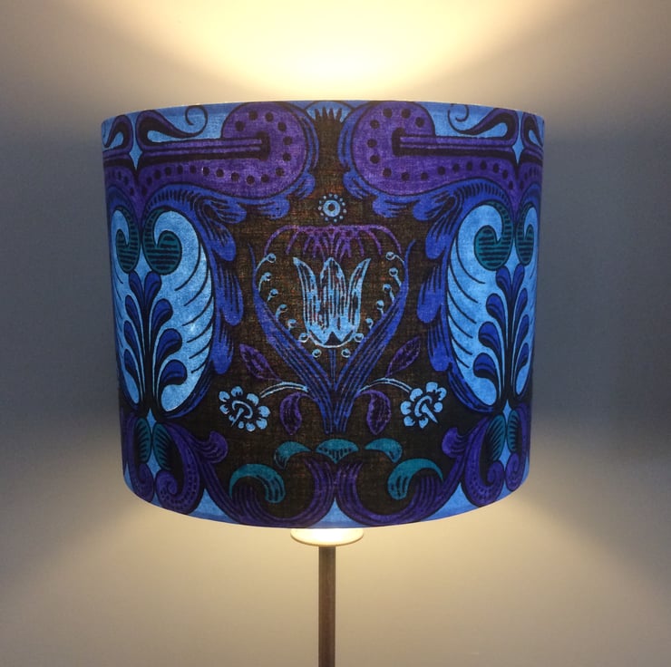Dramatic Arabesque Blue Purple Sanderson VIntage Fabric Lampshade option - bold fabric for a great feature in a modern or retro home.