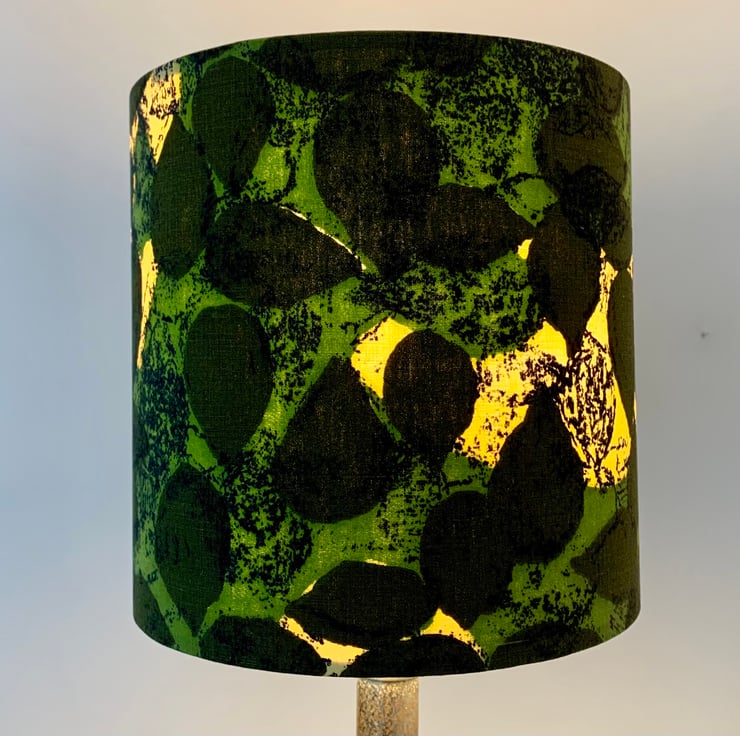 Dramatic Dark Sage Green Leaf MCM 50s 60s Vintage Fabric Lampshade option - a great feature fabric for a lampshade in a modern or retro home to add a romantic , moody feel - 'Pavane' by Robert Teirney, for Danarcom, a Hull Traders designer .