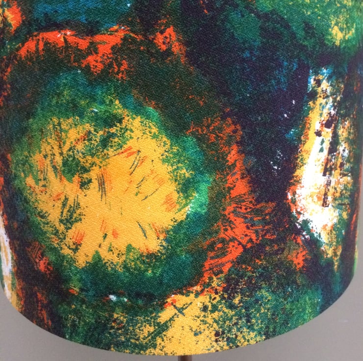 Abstract Green Blue Orange 50s 60s Barkcloth Vintage Fabric Lampshade option - a great feature in a modern or retro home to add a bold look . Would give a great punch of colour in a minimalistic home too.