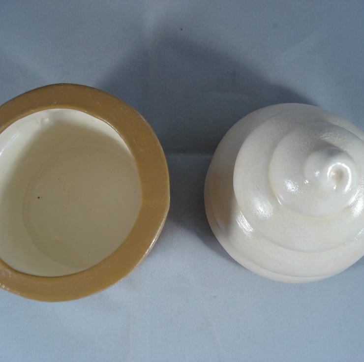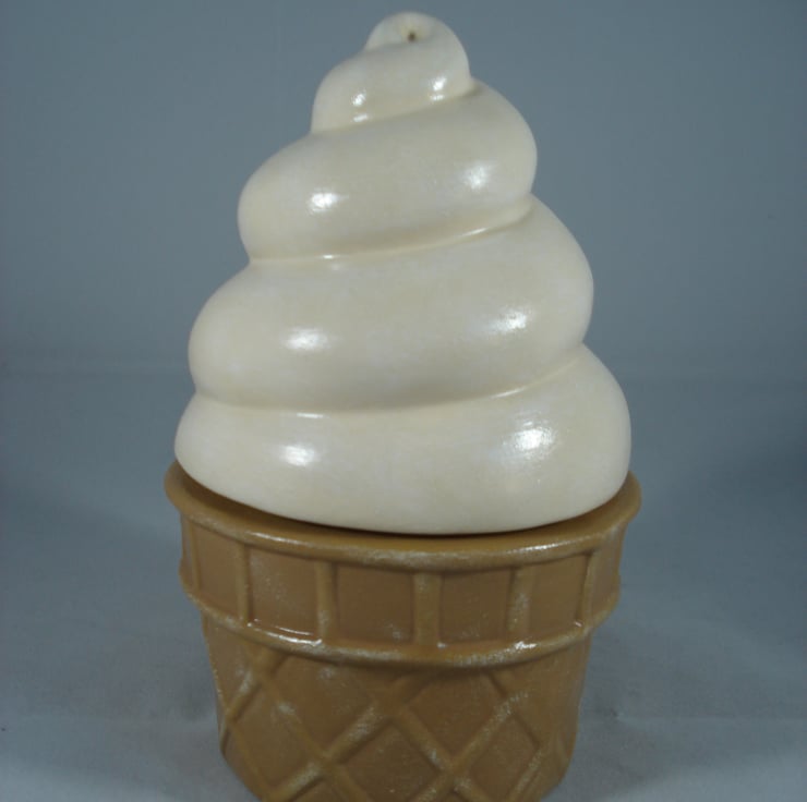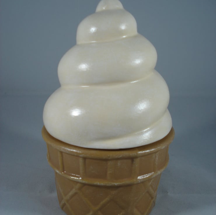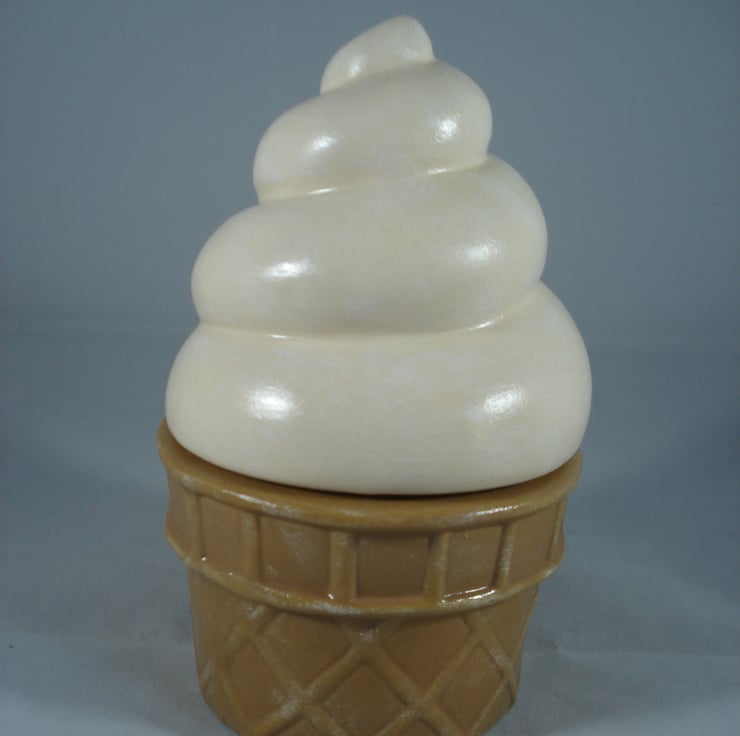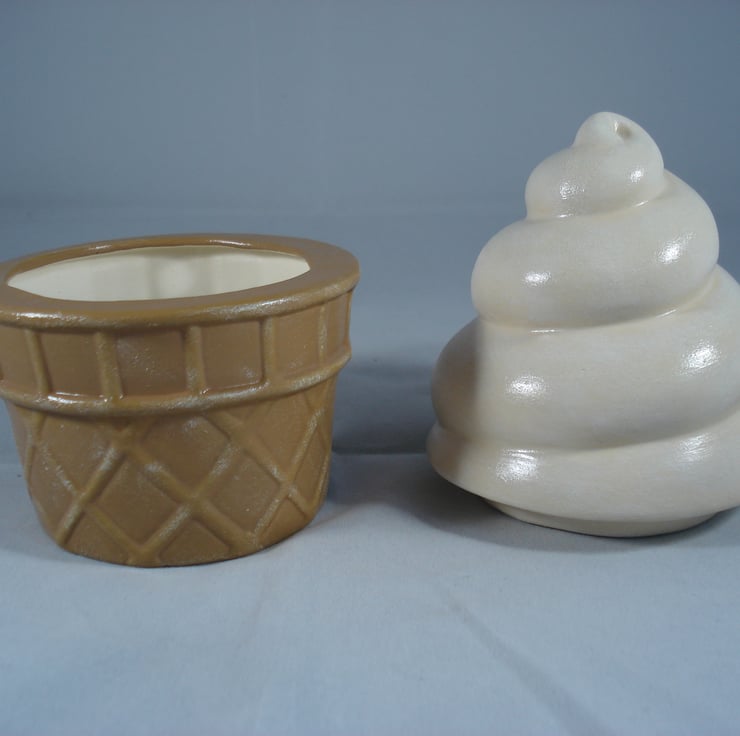I have for sale a small ceramic novelty trinket/jewellery box, which was hand painted by myself. It is a whippy ice cream cone. The ice cream part is the lid and the cone part as the container for any items. This would make a fun and novel addition to anyone's home, or perhaps given as a gift.