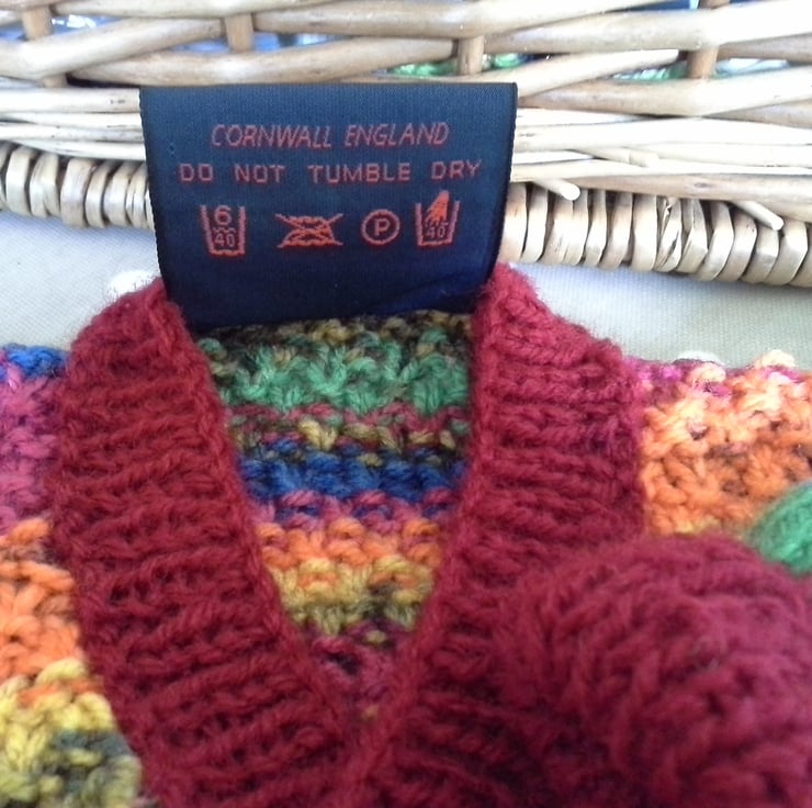 Baby knitwear is designed and hand crafted by Demelza Designs in Cornwall meeting UK baby safety standards, Only branded premuim acylic, acrylic/natural fibre blends or pure natural fibre yarns are used in baby knitwear which conforms to BS984/76 standards.