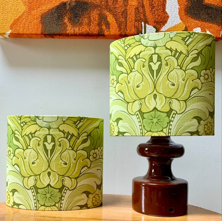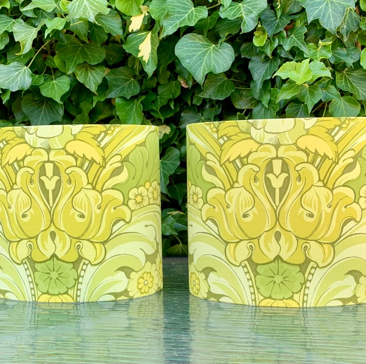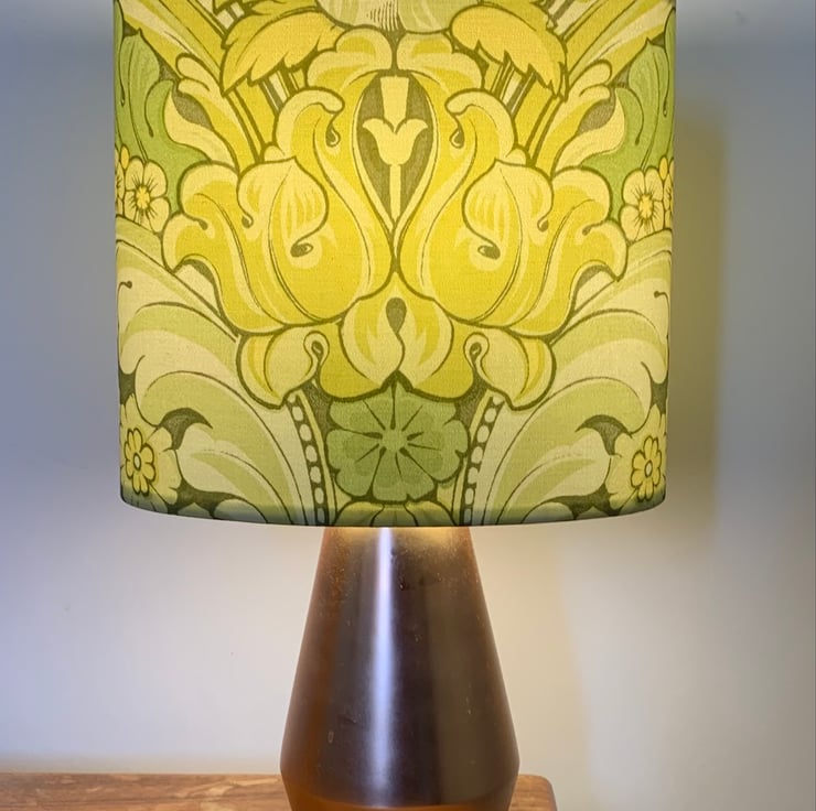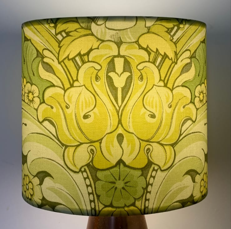 Zesty Lime Green 70s William Morris Style Vintage Fabric 35 cm w Lampshade -super fabric for n a modern, retro or traditionally styled home.