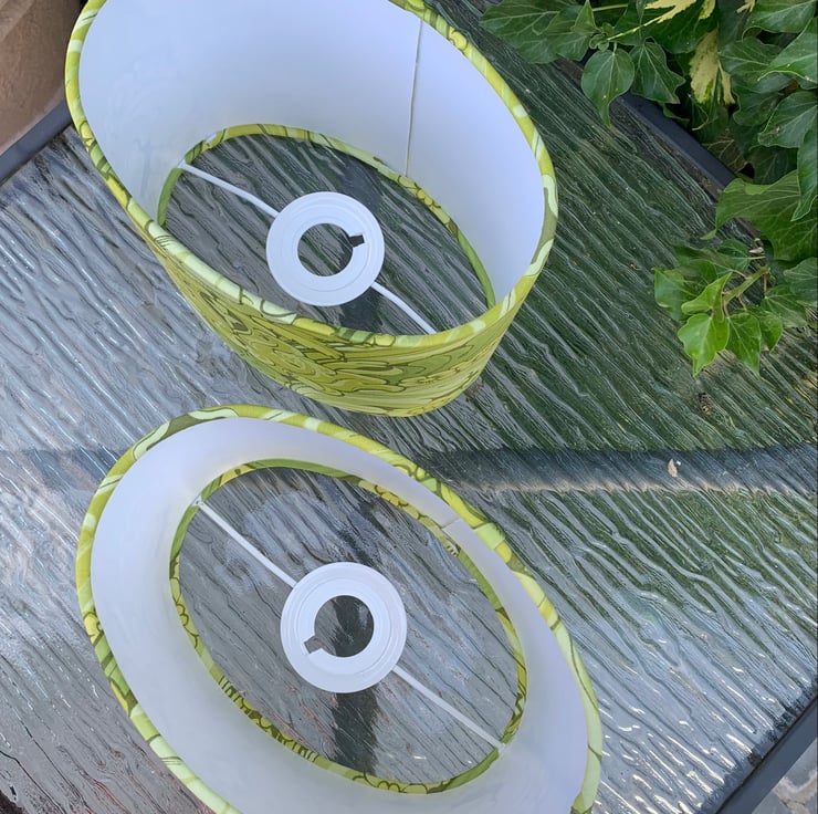 LAST ONES ! DRUM 35 cm x 30 cm lampshade and a couple of 20cm w Oval shades. The oval shades are made with non pattern align joined fabric with seams at side/back. See photos.